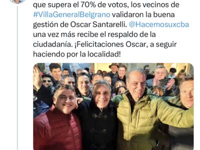 los principales referentes los comunicaron en sus cuentas de Twittear, el Gobernador Schiaretti publicó ; “ Felicitaciones a los intendentes y jefes... LEER MÁS