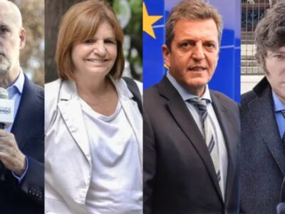 Elecciones 2023; Quienes son los 4 candidatos con más intención de votos /04 Jul 2023En la foto Horacio Rodríguez Larreta, Patricia Bullrich, Sergio Massa y Javier Milei, caratulados como los cuatro candidatos que cuentan con más... LEER MÁS
