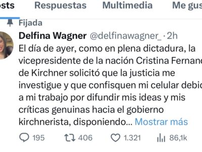 El descargo de la panelista acusada por Cristina Fernández de Kirchner /28 Ago 2023Luego de ser señalada por la vicepresidenta, Delfina Wagner salió a defenderse y publicó un en sus redes sociales. “ El día... LEER MÁS