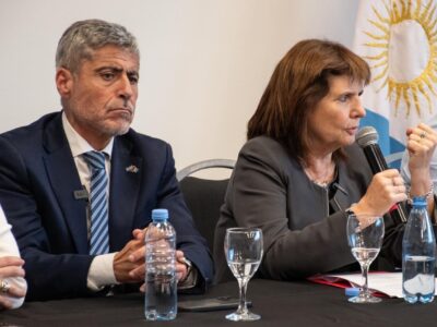El ministro de Seguridad, Juan Pablo Quinteros, acompaña a la ministra de Seguridad Nacional, Patricia Bullrich. /27 Mar 2025