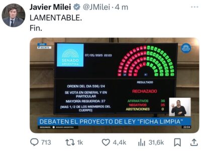 Se rechaza “ Ficha Limpia” con 36 a favor y 35 en contra. “Los senadores misioneros (Sonia Decut y Carlos Arce) votaron... LEER MÁS