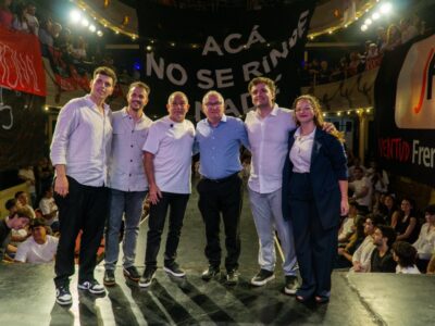 Con una inmensa bandera en la que se leía el mensaje “Acá no se rinde nadie”.