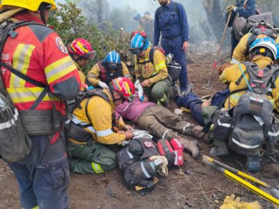 Cuarto día en Chubut: bomberos cordobeses rescataron a dos civiles heridos.