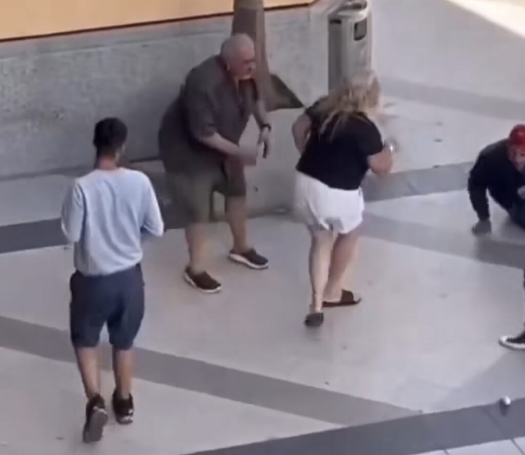 Un grupo de delincuentes robó y golpeó a una pareja de nacionalidad argentina, en el ingreso de un conocido shoping, la pareja se encontraba paseando cuando fueron sorprendidos por una turba de jóvenes ladrones, la desesperación y gritos de la mujer al ver que golpeaban a su marido. En la imagen se ve cómo un guardia de seguridad registra lo ocurrido, pero no interfiere
