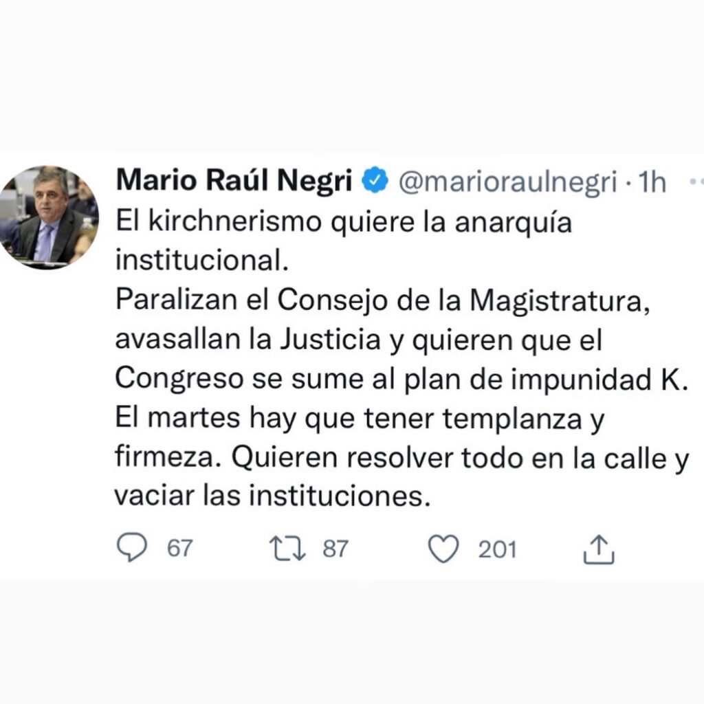 El presidente del Bloque de la UCR @marioraulnegri expresó “El kirchnerismo quiere la anarquía institucional.