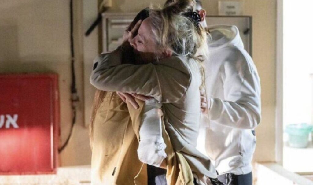 “Estás conmigo, todo está bien”, le dice Keren Schem a su hija de 21 años mientras se abrazan.