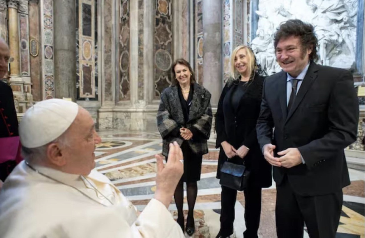 Minutos antes del inicio de la ceremonia , que comenzó a las 9.23 horas locales (5.23 de Argentina), Milei se acercó a la sacristía de la basílica vaticana, para tener proximidad al Sumo Pontífice, donde se cruzaron cálidamente pese a todos los “ dimes y diretes” antes de la campaña Presidencial de Miley, hoy desde otro lugar expresó;