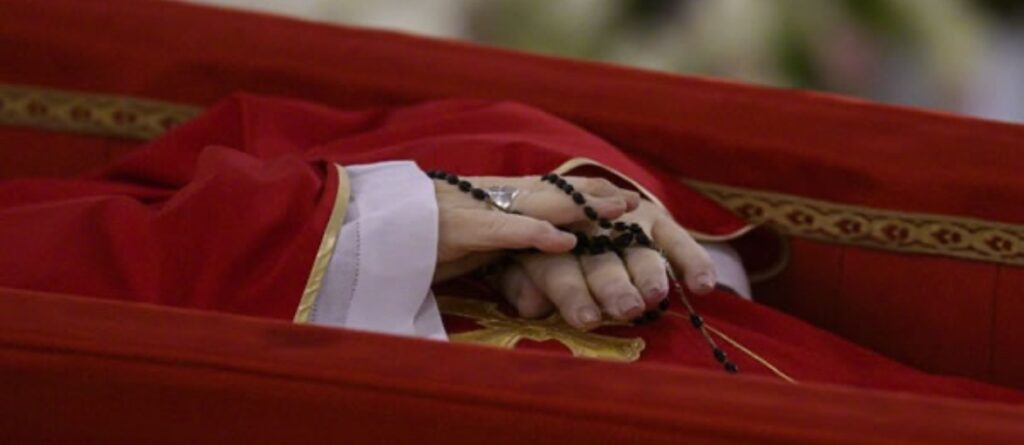 Durante el rito, presidido por el cardenal camarlengo, Kevin Joseph Farrell, el maestro de las Celebraciones Litúrgicas, monseñor Diego Ravelli, leyó el acta, que fue colocada en el féretro al final de la celebración.