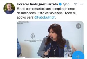 “ Estos comentarios son completamente desubicados. Esto es violencia. Todo mi apoyo para @PatoBullrich “ Hizo referencia el jefe de Gobierno de la ciudad, por las declaraciones públicas de CFK .