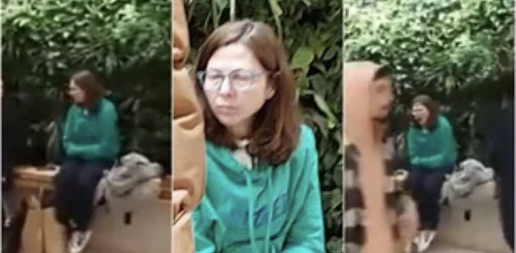 Batakis, en octubre 2022 , Fue filmada en un Apple Store, de Nueva York, se la ve esperando ser atendida .