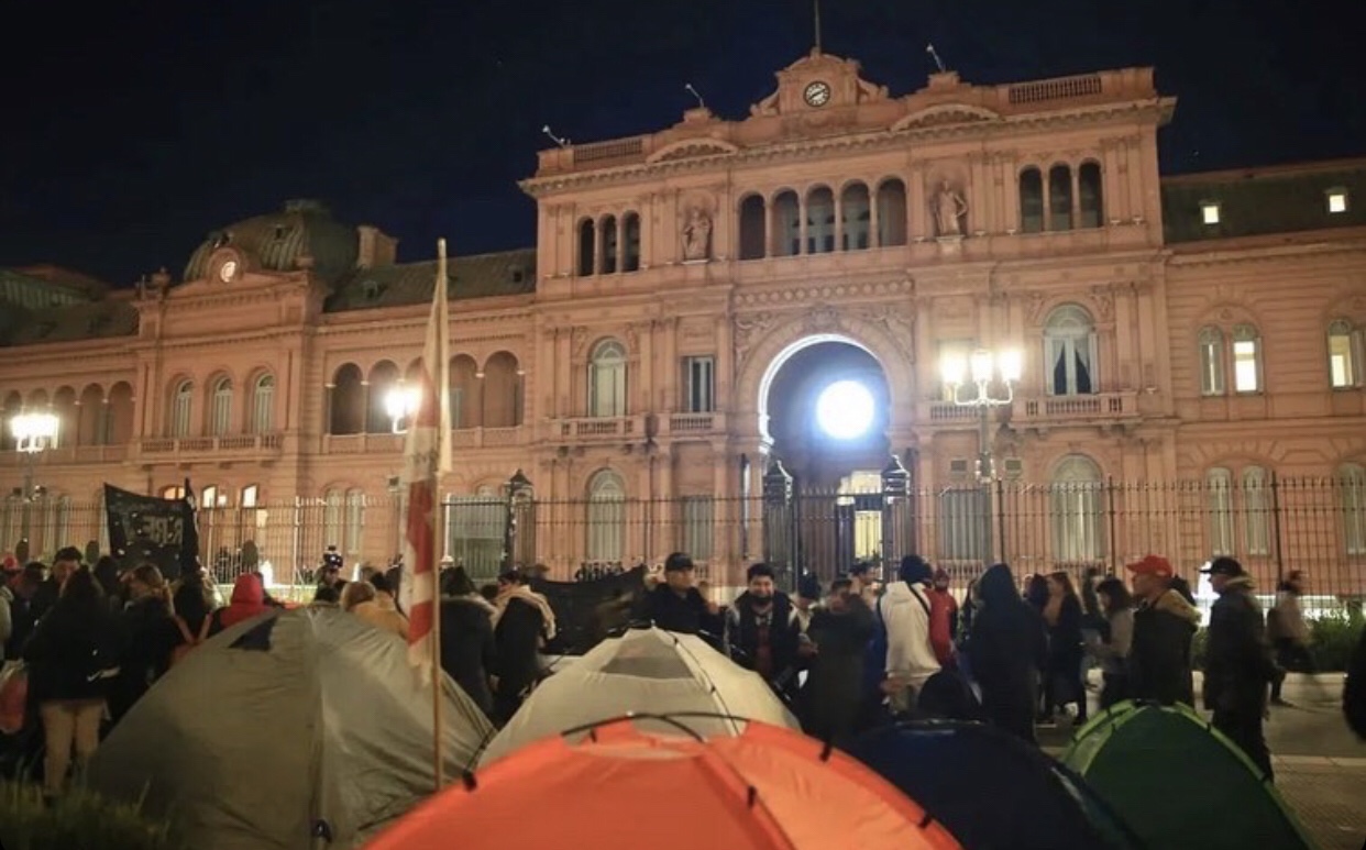 Después que el dirigente Eduardo Belliboni, del Polo Obrero, otorgara una conferencia, los militantes comenzaron a desplegar el acampe que, según anuncian, será hasta las 11 de este jueves ( como primera medida ) «Estamos frente a un Gobierno que está pensando la situación social, pero la situación social está reventando. Necesitamos respuestas, por eso nos quedamos acá», expresó el referente del Polo Obrero, Eduardo Belliboni. Los movimientos marcharon este miércoles por avenida de Mayo hacia el Palacio de Hacienda