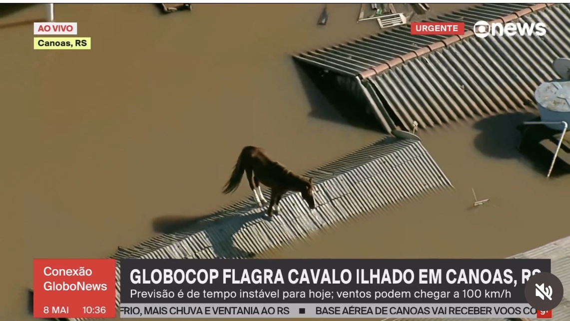 La imagen del día ; la impactante imagen del caballo 🐴 en el techo de una estructura, tapada de agua 💧esperando ser rescatado.