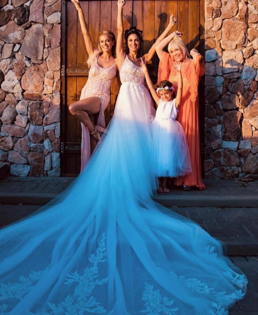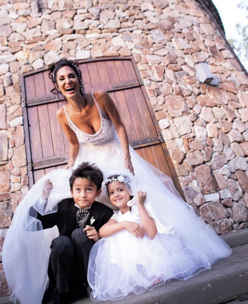 La celebración con más de 200 invitados, en Cardales, Silvina lució un imponente vestido de la diseñadora Claudia Arce , “ con un toque especial” Sil recicló parte del vestido de novia, de su mamá.
