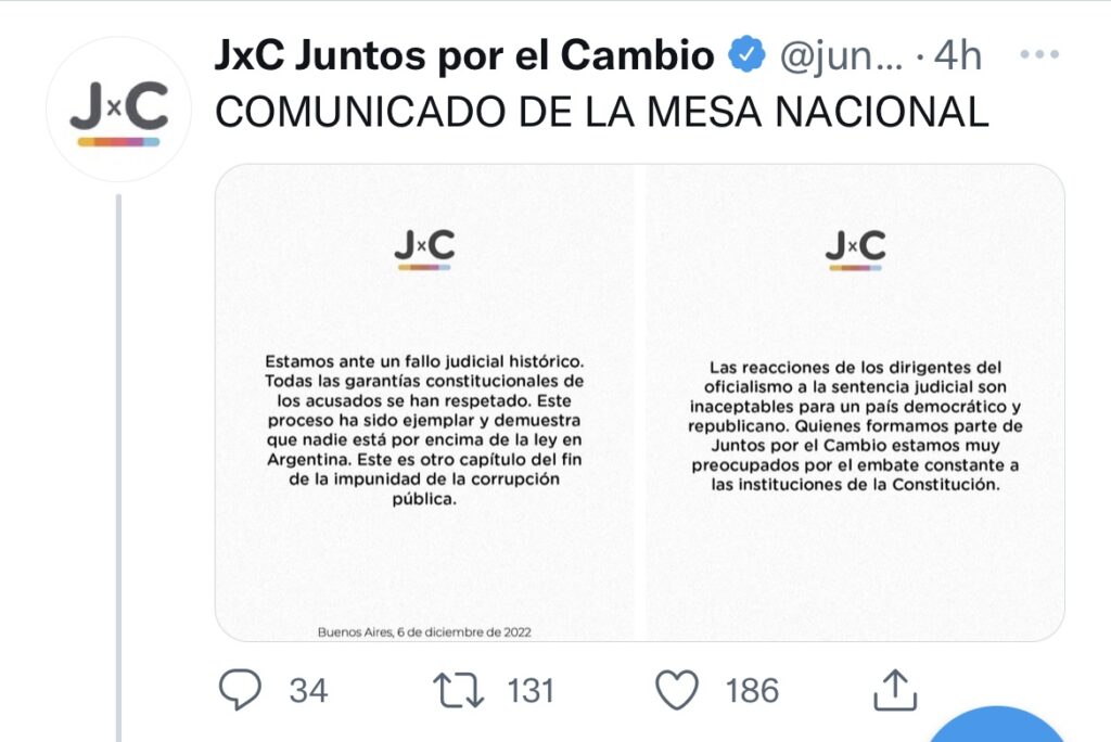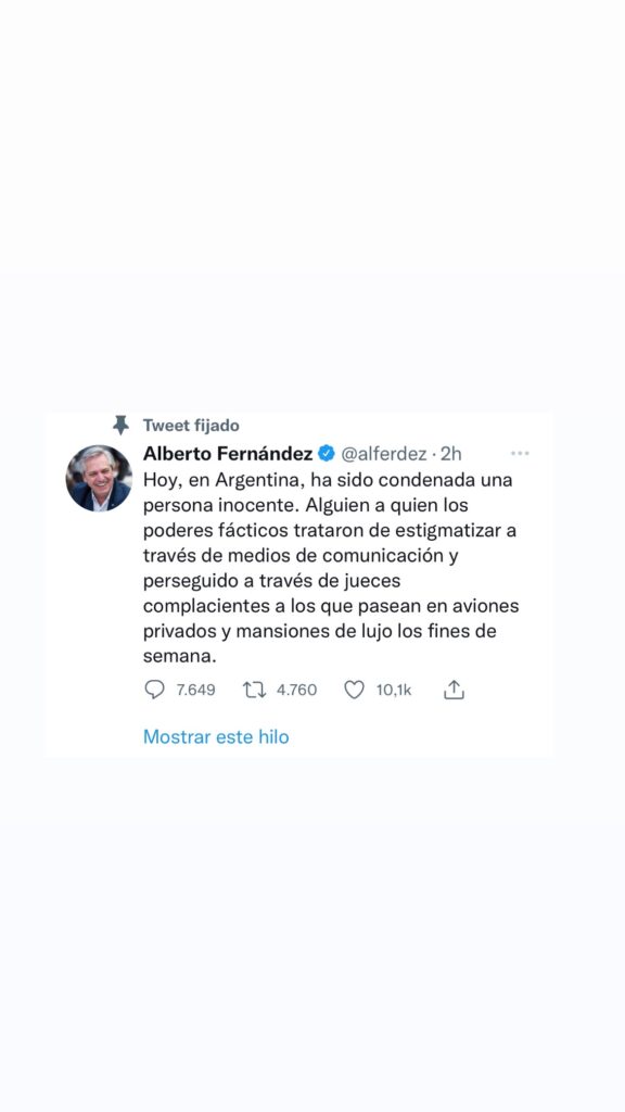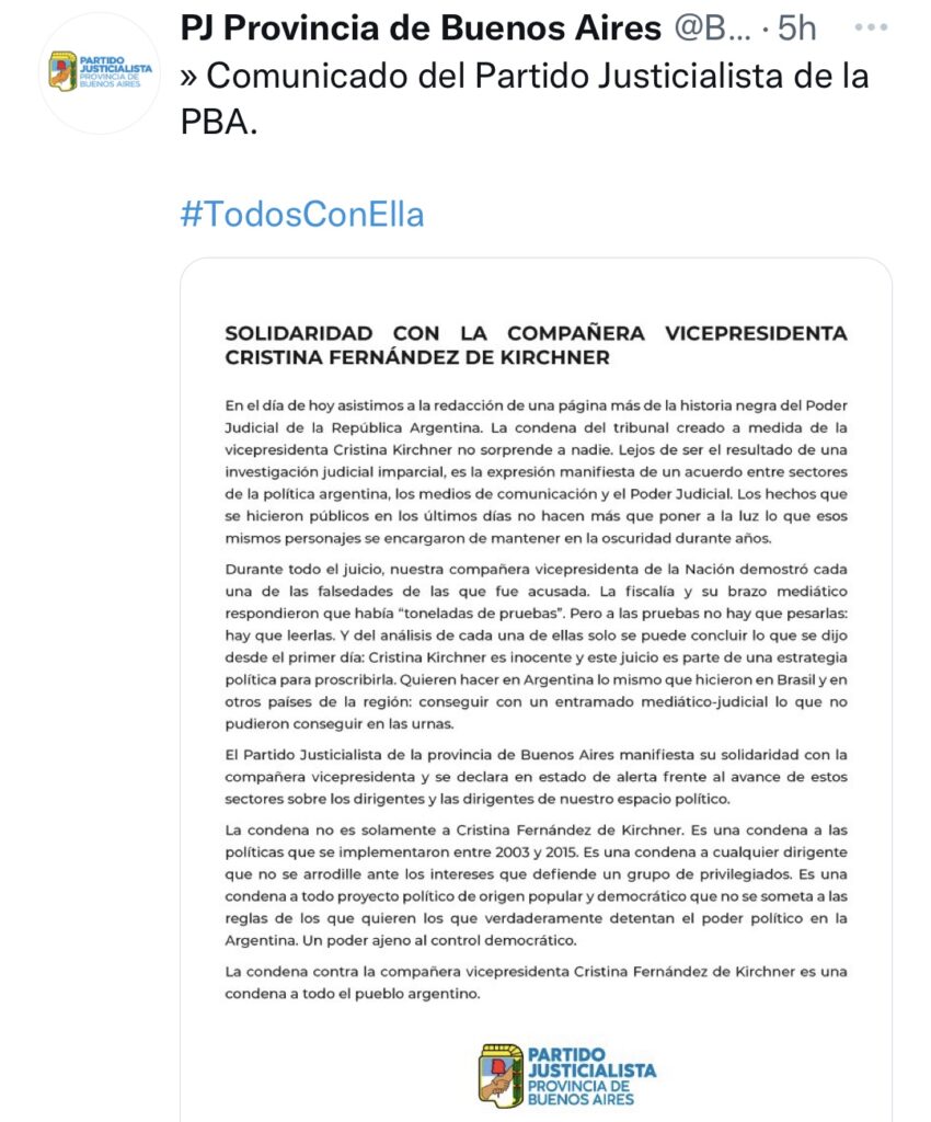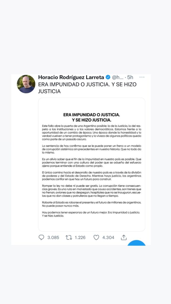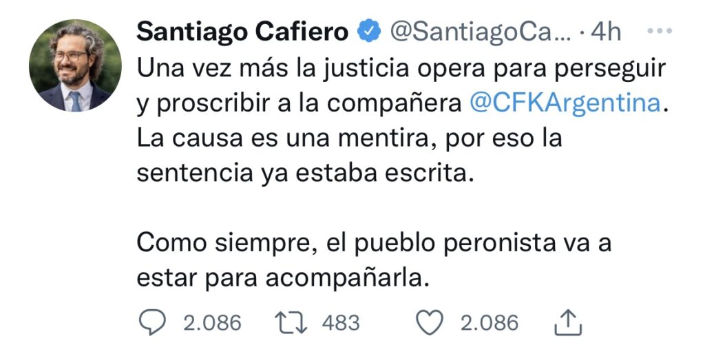 Tras el fallo por la causa Vialidad, donde CFK, fue condenada a seis años e inhabilitada en forma perpetua para ejercer cargos públicos, las repercusiones políticas desde Oficialismo y Oposición, de los principales referentes políticos. COMPARTIR