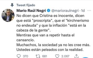 “ No dicen que Cristina es inocente, dicen que está «proscripta», que el «kirchnerismo no endeuda» y que la inflación «está en la cabeza de la gente».