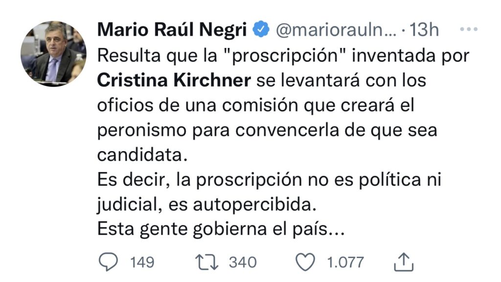 “ Resulta que la «proscripción» inventada por Cristina Kirchner se levantará con los oficios de una comisión que creará el peronismo para convencerla de que sea candidata.