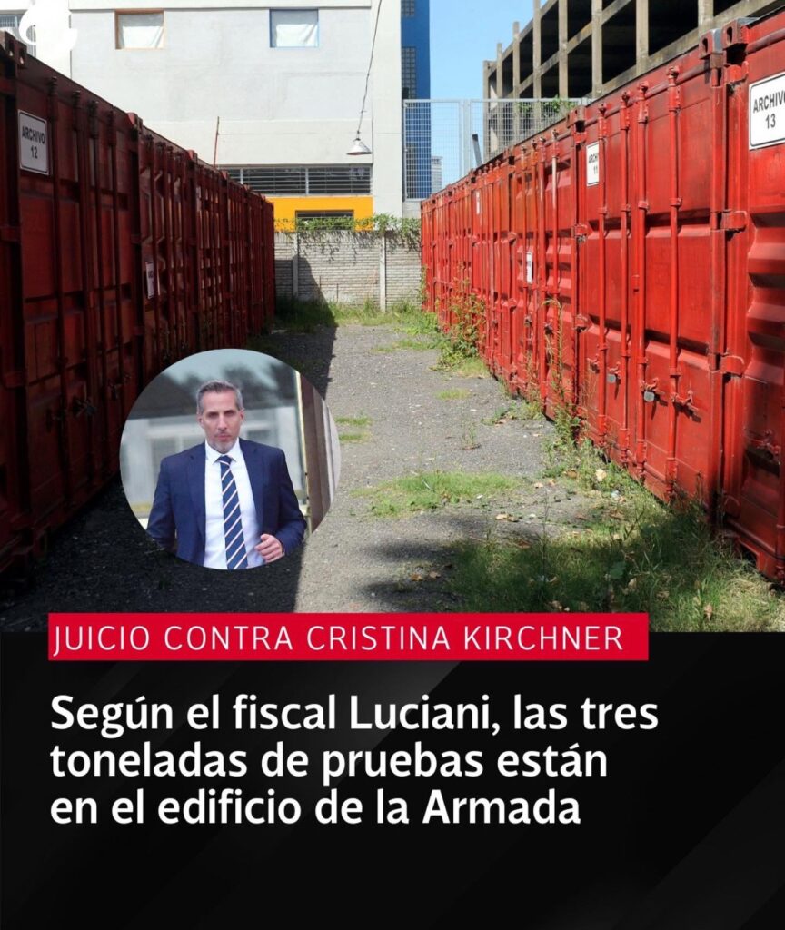El fiscal Luciani aseguró que la documentación está resguardada en el edificio de la Armada, frente a los tribunales de Comodoro Py. También dijo que las tres toneladas de pruebas