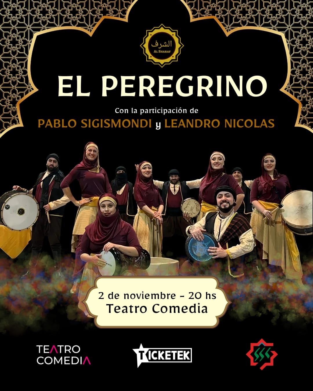 El Ballet Folklórico Árabe Al Sharaf y la Sociedad Sirio Libanesa de Córdoba y presentan “El Peregrino”, junto a Pablo Sigismondi y Leandro Nicolás.