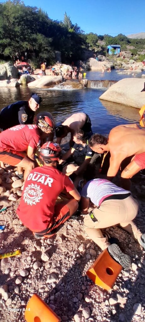 Sucedió en el balneario “Paso de las Tropas”, en la localidad de Las Calles (San Alberto), personal del DUAR asistió a un bañista de 20 años, vecino de la localidad de Nono, quien arrojándose al agua se golpeó la cabeza contra una piedra, produciéndole un corte profundo en el cuero cabelludo. Con la participación del servicio de emergencia 107, que diagnostica traumatismo de columna, el joven fue trasladado al Hospital Regional de Mina Clavero.